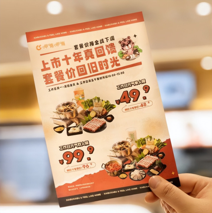 前段时间,呷哺呷哺把门店的单人套餐价格降到49.9元,双人套餐价格降到了百元以下,这是近十年来降价力度最大的一次活动,。